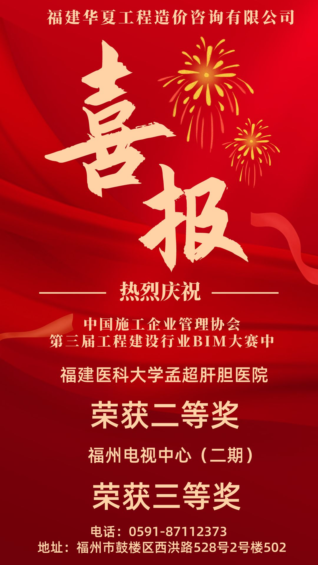 7月8日,中国施工企业管理协会发布关于第三届工程建设行业BIM大赛结果的公示,我司在此次全国范围内报名的3077项参赛作品中脱颖而出,喜获二等奖一项《BIM技术在福建医科大学孟超肝胆医院施工中的深化拓展应用》,三等奖一项《福州电视中心项目(二期)施工阶段bim综合应用》。